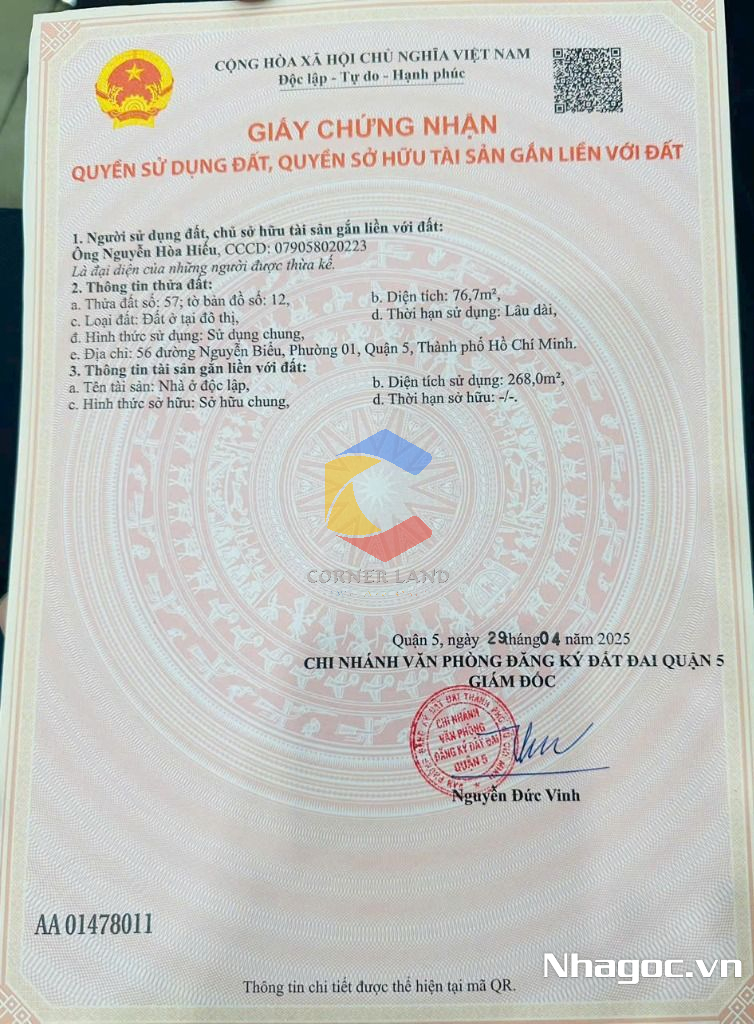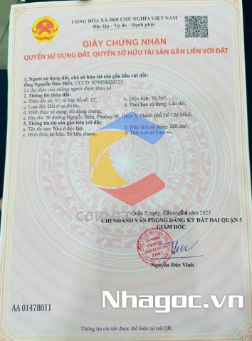 Bán nhà mặt tiền số: 56 Nguyễn Biểu, Phường 1, Quận 5, Hồ Chí Minh
